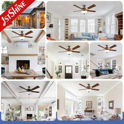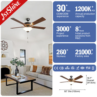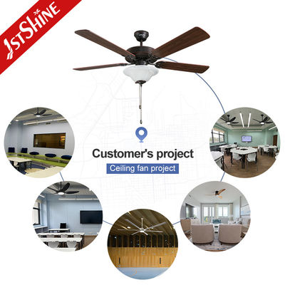 Quạt trần retro xu hướng 5 lưỡi dao MDF mới với đèn chuỗi kéo truyền thống