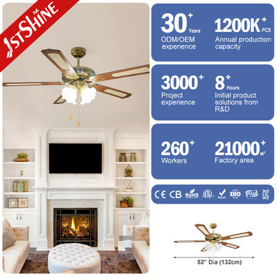 Quạt Trần Cổ Điển Truyền Thống Có Đèn Chùm 52 Inch Dành Cho Nhà Hàng