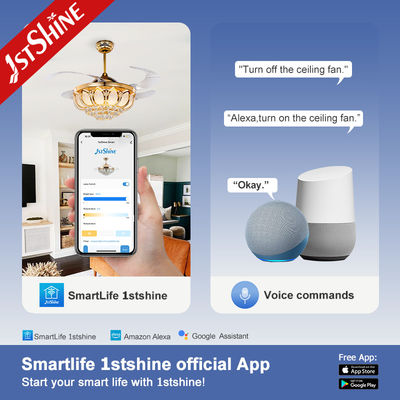 Quạt trần pha lê có thể thu gọn 42 inch Lưỡi ABS có đèn LED