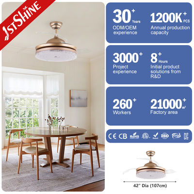 Quạt trần LED có thể gập lại trang trí màu vàng với 3 cánh quạt trong suốt và đèn
