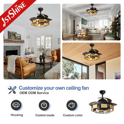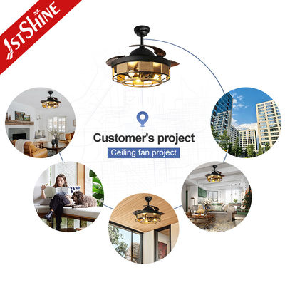 Quạt trần có đèn và điều khiển từ xa màu đen có thể thu gọn trong nhà 42 inch