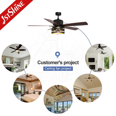 Quạt trần kiểu công nghiệp 5 cánh MDF có đèn và điều khiển từ xa