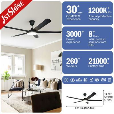 Quạt trần LED 3 màu động cơ DC cánh nhựa đen 62 inch