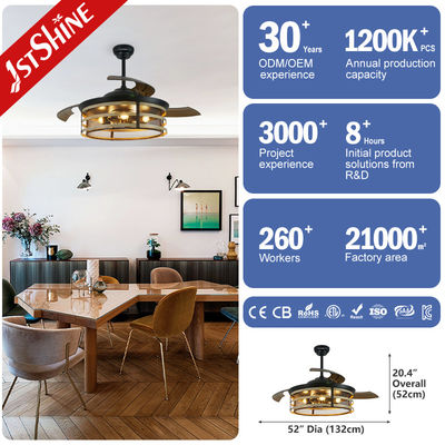Quạt trần kiểu mộc mạc có đèn của chúng tôi có 3 cánh quạt tàng hình, sẽ tự động bung ra và thu vào khi bật/tắt quạt. Cánh quạt được làm bằng vật liệu PC chất lượng cao, giúp nó bền hơn. Phù hợp với nhu cầu của bạn trong mọi mùa. Đèn quạt trần kiểu mộc mạc có 5 đui đèn E26 tiêu chuẩn và mỗi đui được chia ra. Nó cũng cung cấp nhiều chức năng khác nhau như luồng không khí đảo chiều, hẹn giờ, chế độ tiết kiệm năng lượng và hoạt động êm ái hơn. Lý tưởng cho phòng khách, phòng ngủ, nhà hàng, phòng ăn, v.v.