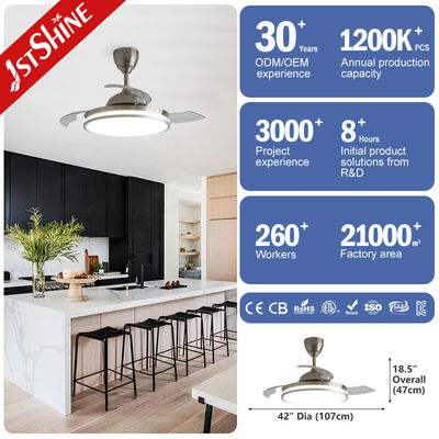 Quạt trần led vô hình theo phong cách hiện đại của chúng tôi, được thiết kế để tăng cường không gian sống của bạn với cả chức năng và phong cách.Chuông quạt trần LED 42 inch này tự hào về một thiết kế thanh lịch và hiện đại mà tích hợp liền mạch vào bất kỳ căn phòng, làm cho nó trở thành sự lựa chọn lý tưởng cho các khu vực có trần nhà thấp và không gian hạn chế, chẳng hạn như phòng ngủ, phòng khách, nhà bếp, v.v.