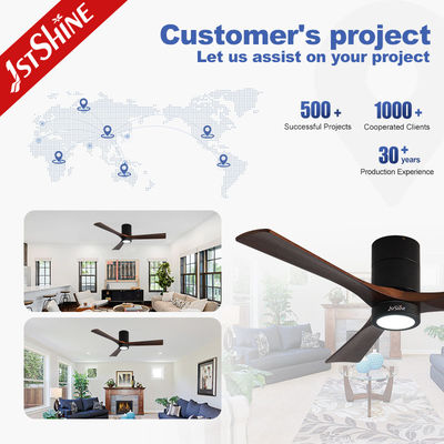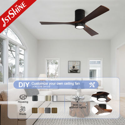 Trang trí 3 Blades gỗ tự nhiên Flush Mount Led Tuya Smart Ceiling Fan With Light