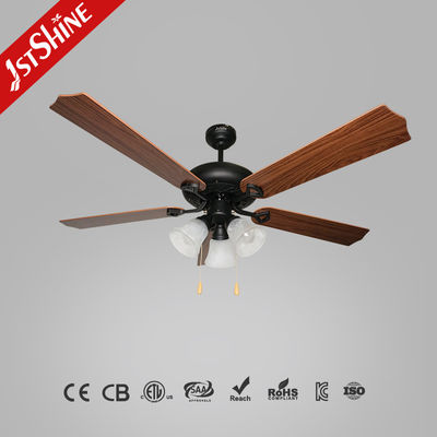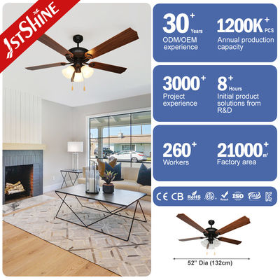 Thiết kế thanh lịch: Năm lưỡi dao kết thúc bằng hạt gỗ kết hợp với đèn thủy tinh hoa tulip mài để tạo ra một vẻ đẹp ấm áp, cổ điển