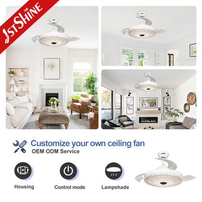 Các cánh quạt acrylic có thể thu gọn tự động mở rộng khi quạt đang bật và thu lại khi tắt, duy trì vẻ ngoài gọn gàng giống như đèn chùm. Chụp đèn acrylic kiểu pha lê tăng cường khả năng khuếch tán ánh sáng và mang lại vẻ sang trọng cho bất kỳ nội thất nào.