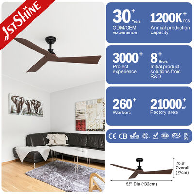 This modern black ceiling fan blends style, silence, and smart controls—perfect for living rooms or bedrooms. It combines whisper-quiet DC motor performance with dark wood-grain ABS blades and a user-friendly remote or wall switch setup.